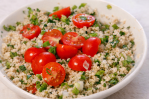 Uma das melhores opções é fazer uma salada prática, bem rapidinha, mas muito saudável. Ingredientes 2 xícaras (chá) de quinoa