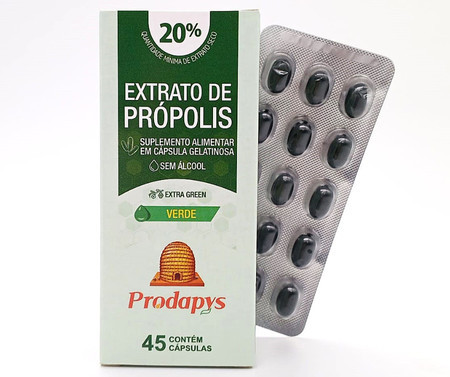 Notas: As cápsulas gelatinosas (softgel) são preferidas por facilitar a deglutição e mascarar o sabor forte e picante da própolis líquida.